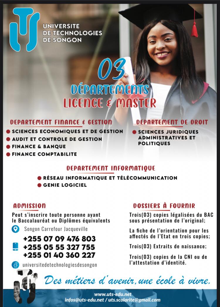 L’UTS ambitionne de former des leaders intègres, compétents et capables de relever les défis de la société Africaine.